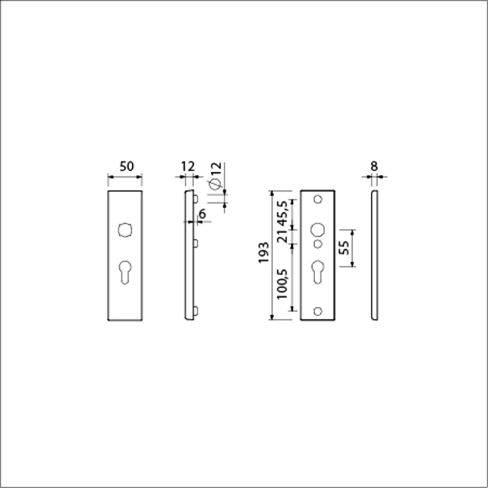 binnenschild 8 mm met nylon ring en 3 schroeven M6 RVS.
